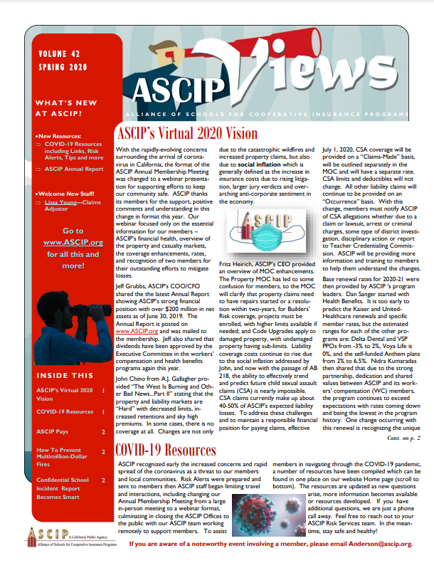 Experts report that the 2022 wildfire season could be very bad due to the drought in California and other western states. ASCIP recommends that Districts prepare in advance by maintaining defensible space around buildings, review emergency management plans, and knowing how to evacuate and close buildings properly to prevent smoke damage. For more information, access ASCIP’s Risk Alert on Wildfires and District Risks.